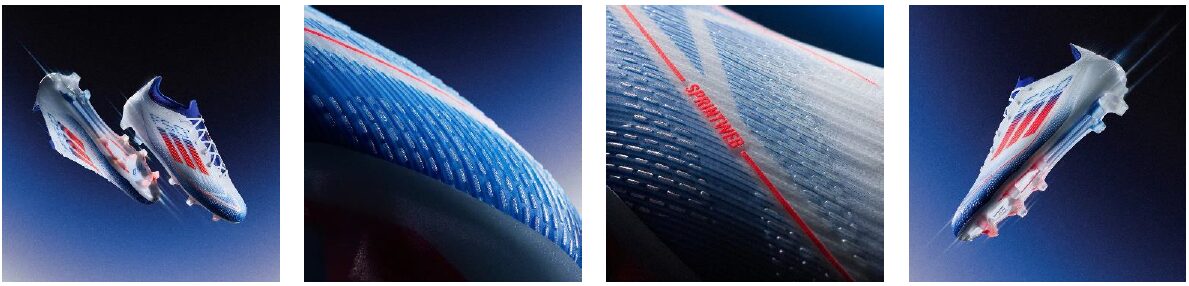 また戦略的に配置された立体的なテクスチャーのライン、スプリントウェブによってスピードにのった際のボールタッチとコントロールに貢献します。