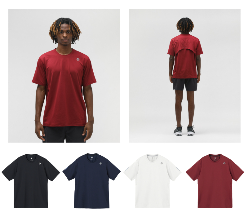 ランニングに真摯に向き合う人のためのこのコレクションは、パフォーマンス向上のための快適性を追求したデサント独自の機能が多数搭載されており、新作のベンチレーションTシャツは、まるで呼吸をするかのように背中がはためき、空気の流れを確保。衣服内の蒸れの軽減に対応し、快適に保ちます。