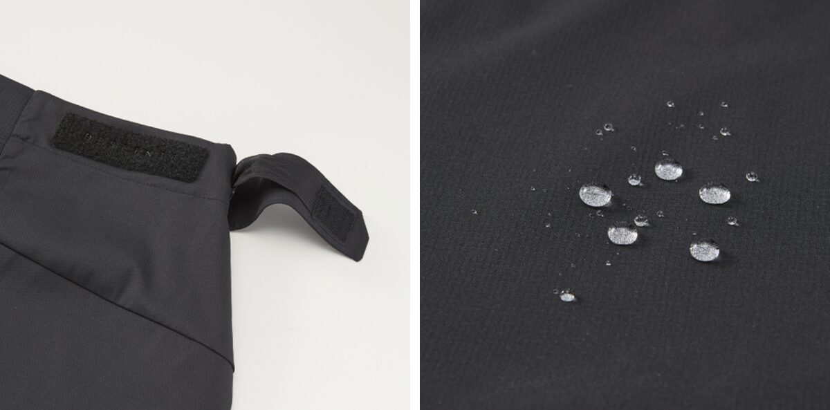 (左)ウエストアジャスター、(右)はっ水機能
