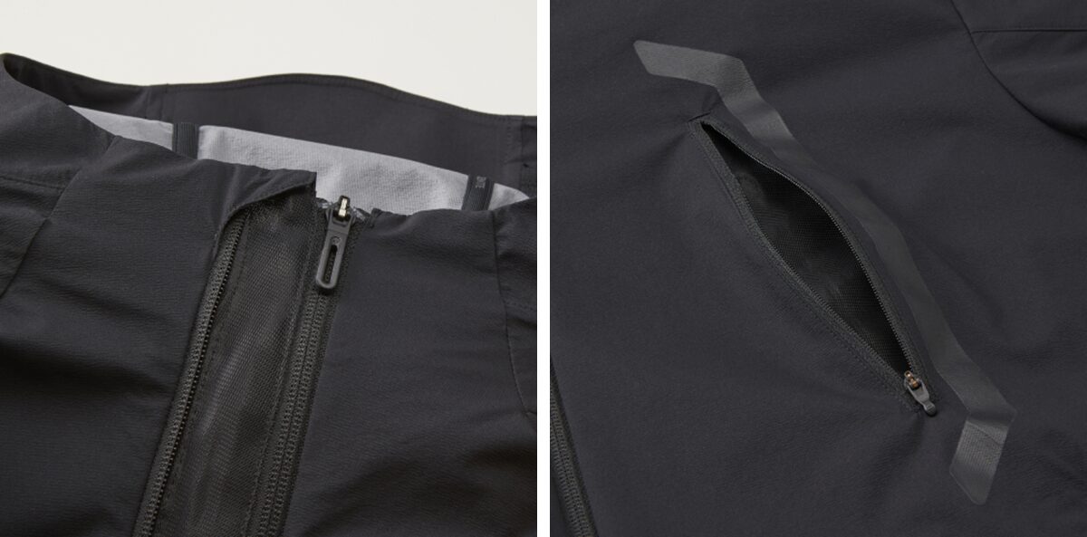 また胸元のファスナーにもベンチレーション機能を有し、開閉することで衣服内の熱気を逃がします。