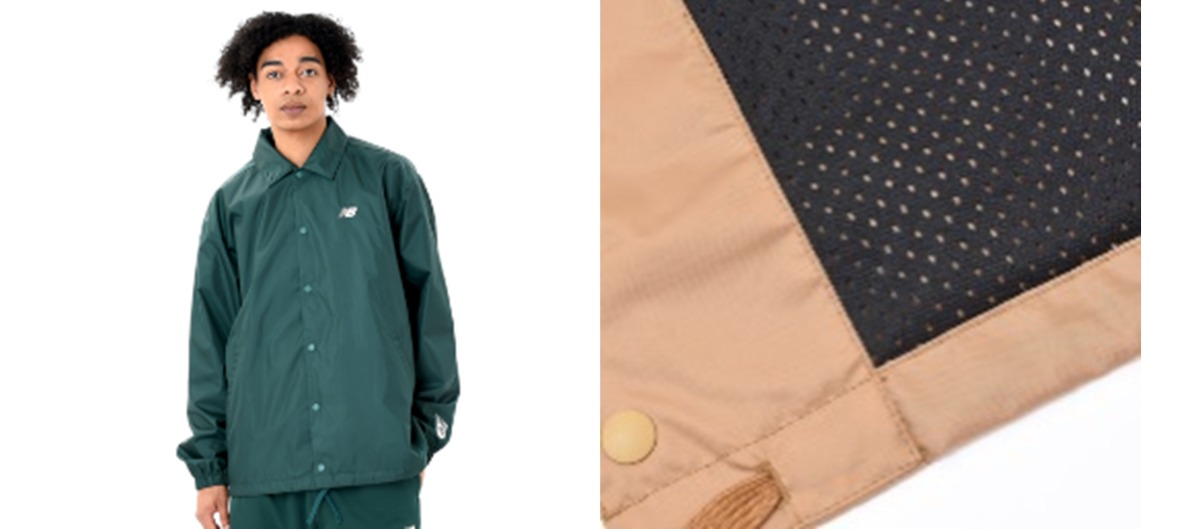 ストレッチが効いて脱ぎ着しやすく、風を防ぐため練習前後の移動時や普段着としても着脱しやすいアイテム。襟が少し高いモックネックのウィンドブレーカー、ウィンドパンツ、ウィンドショーツがラインナップ。ニューバランスのバスケットロゴがさりげないワンポイントになっています。