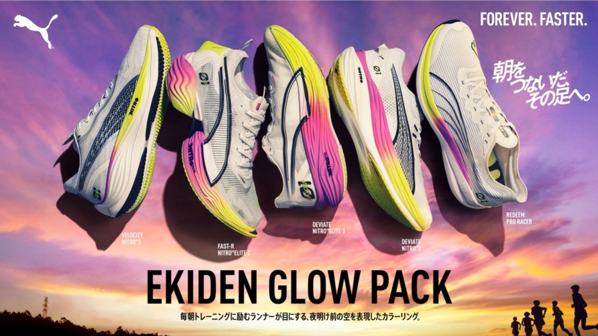 プーマ ジャパン株式会社(以下、プーマ)が、駅伝やマラソンが本格化するシーズンに向けてレーシングモデルを含む5モデルをラインアップした「EKIDEN GLOW PACK(エキデン グロー パック)」を2024年11月25日(月)より一部店舗予約開始、11月29日(金)から一般発売します。