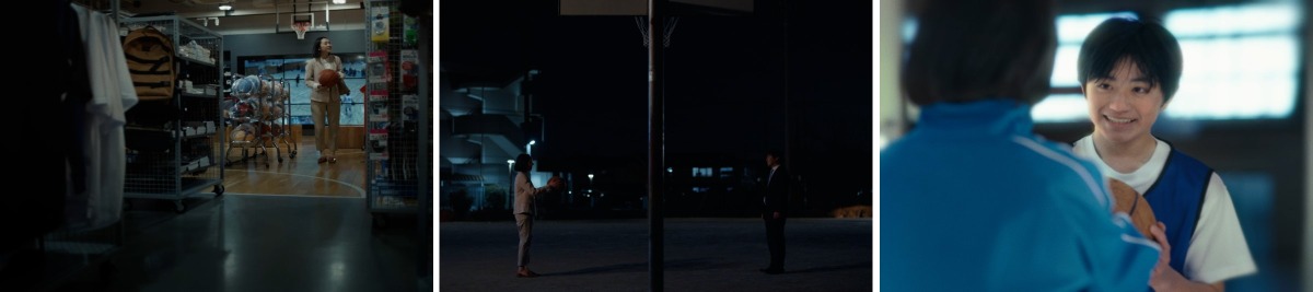 夜の公園、妻と二人で会社から帰宅途中、新品のバスケットボールをパスされる。二人で中学卒業時のエピソードを振り返り、自分がバスケに熱中していたことを思い出す。