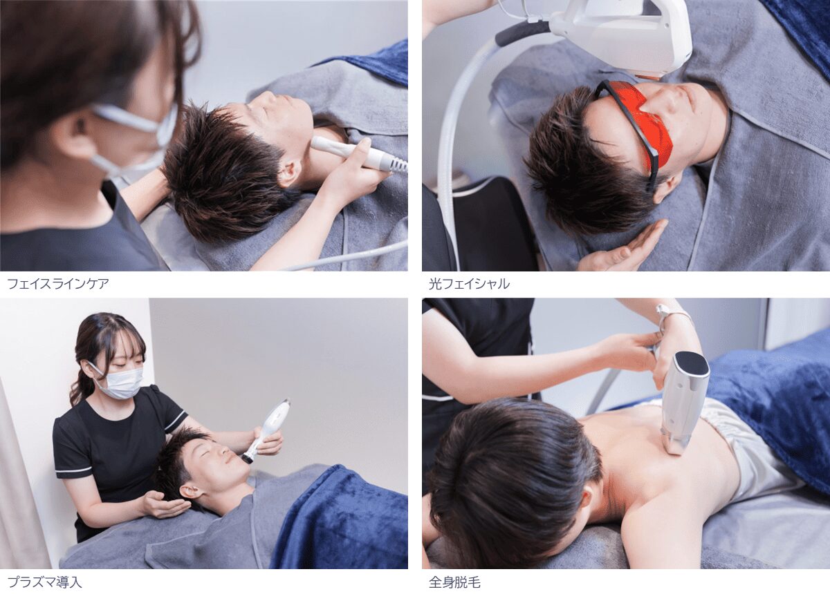 全身脱毛(VIO含む・顔除く)、顔脱毛(うなじ含む)、毛穴洗浄、光フェイシャル、プラズマ導入、フェイスラインケア、デンタルホワイトニングなど、幅広い美容メニューを展開。