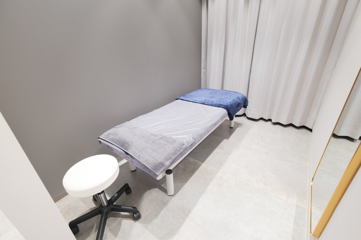 誰もが心地よく過ごせるよう、施術ルームには快適なリクライニングチェアや施術ベッドを配置。プライバシーを重視した構造で、性別を問わずリラックスできる環境を提供します。